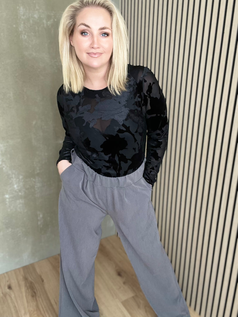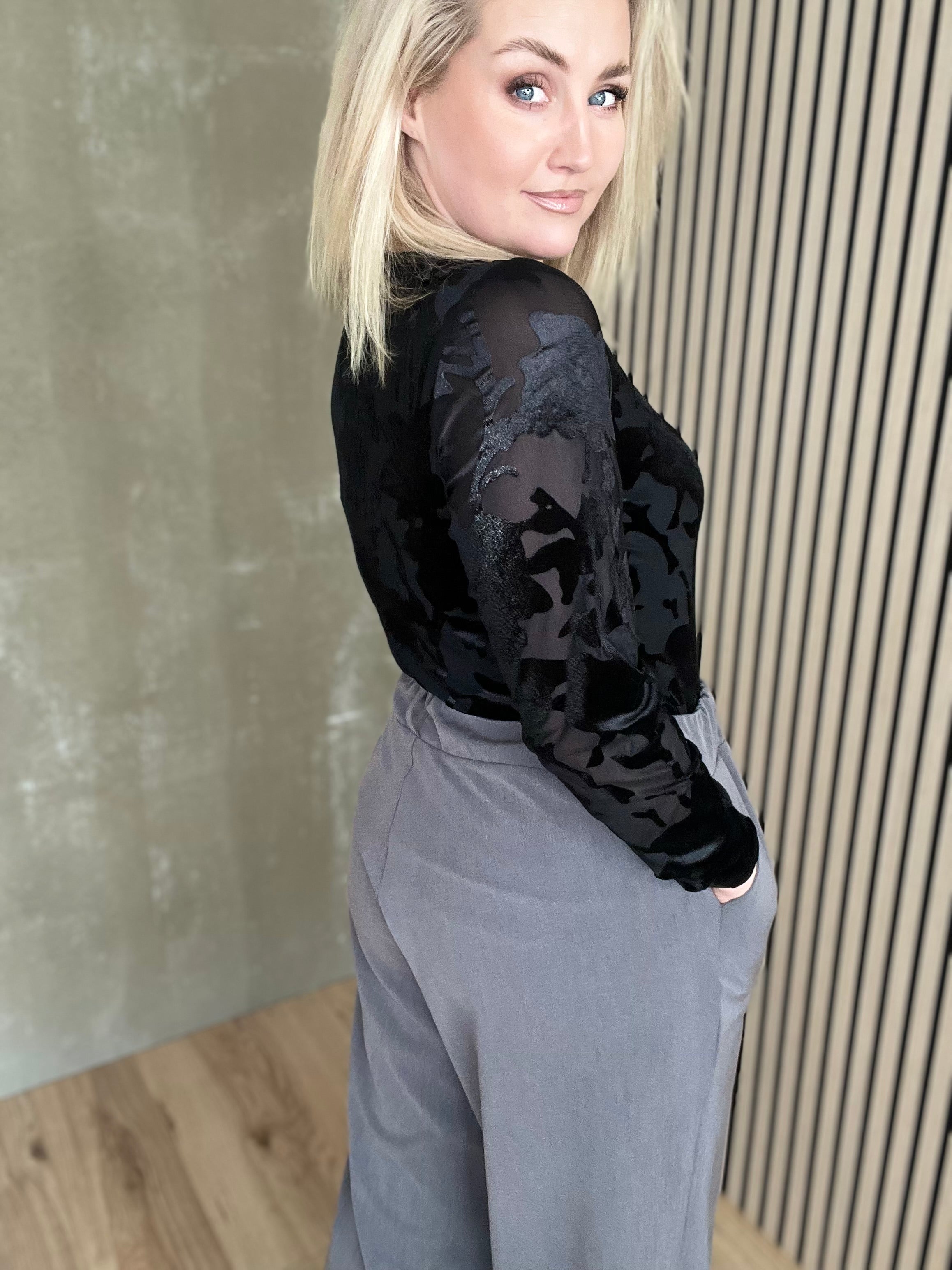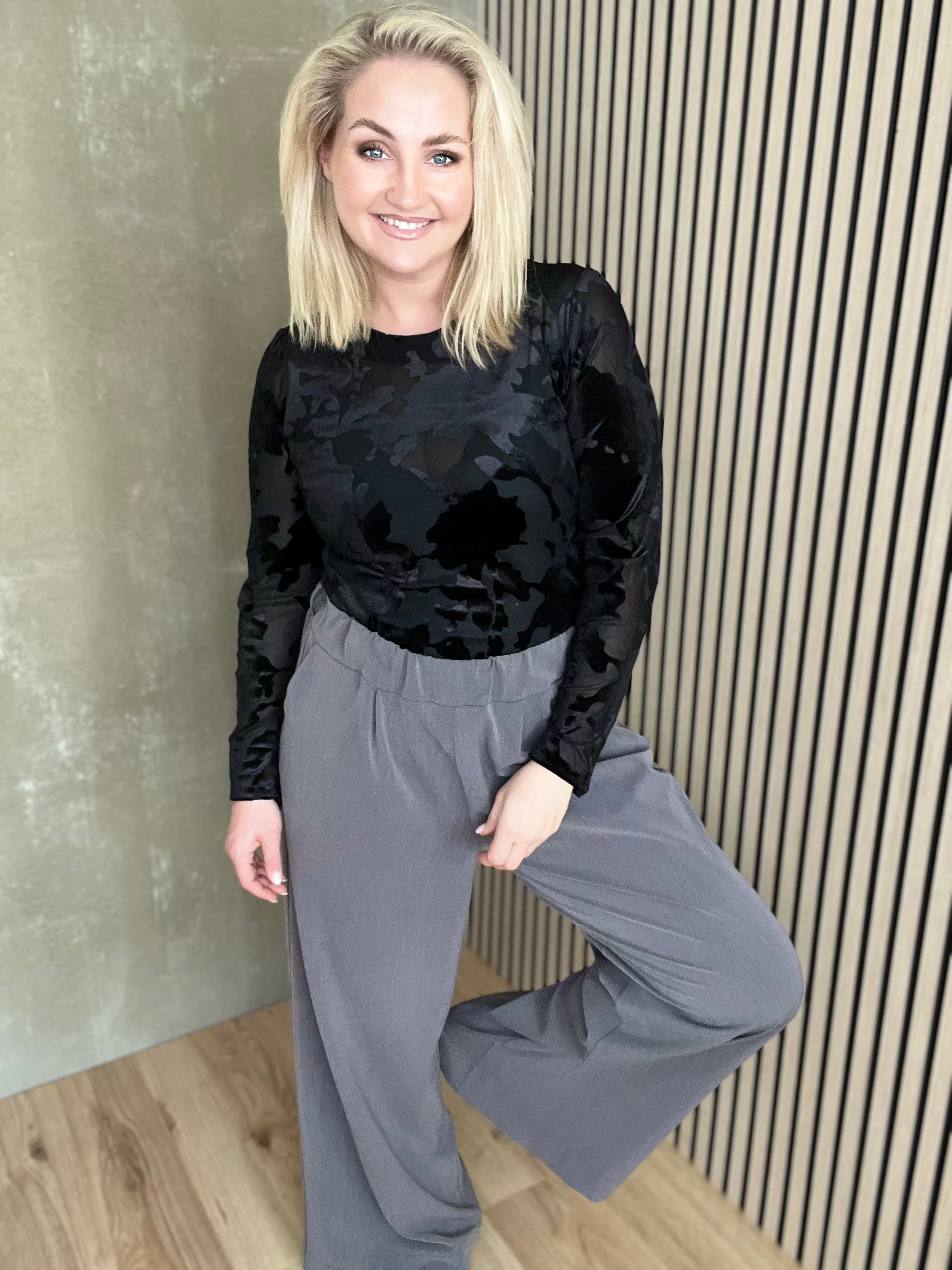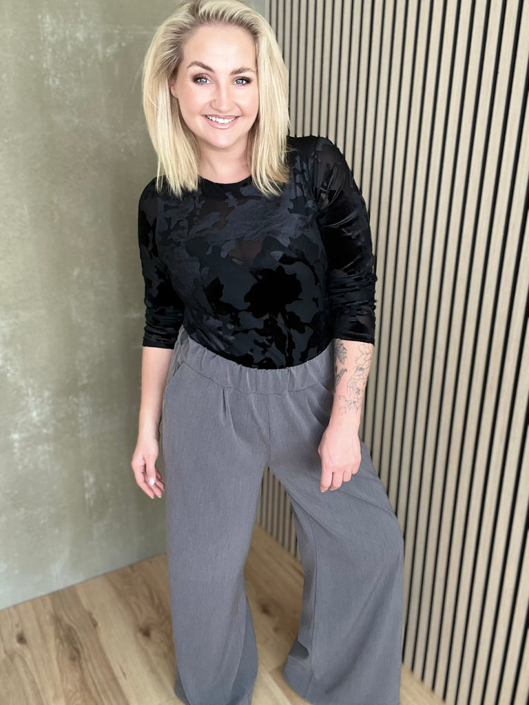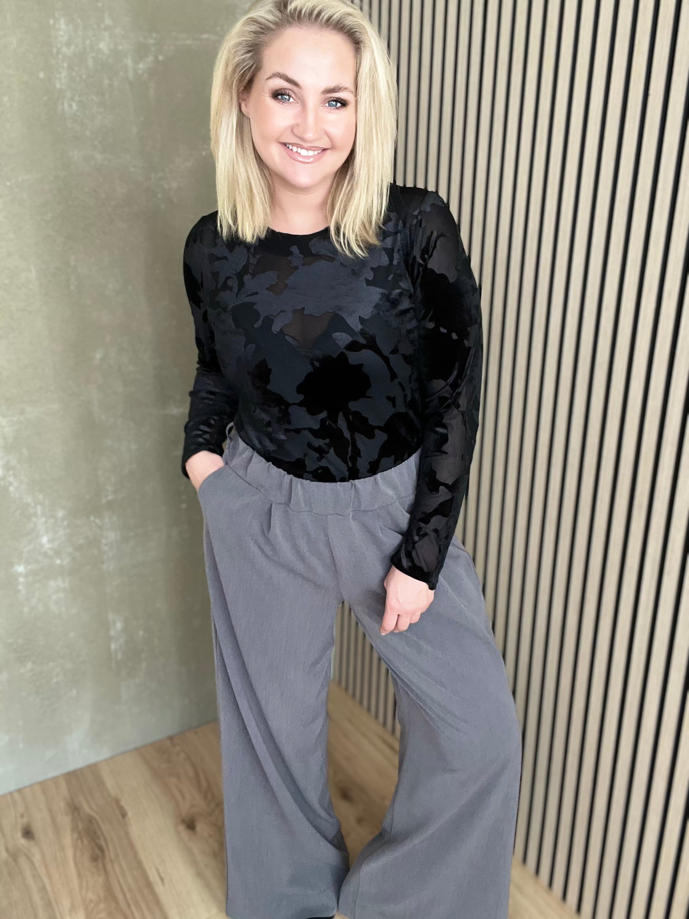 Palazzo buxurnar eru klæðilegar og frekar sparilegar, beinar buxur. Þessar eru svolítið 70's en þetta beina snið hefur poppað upp reglulega á tískupöllunum í gegnum tíðina.