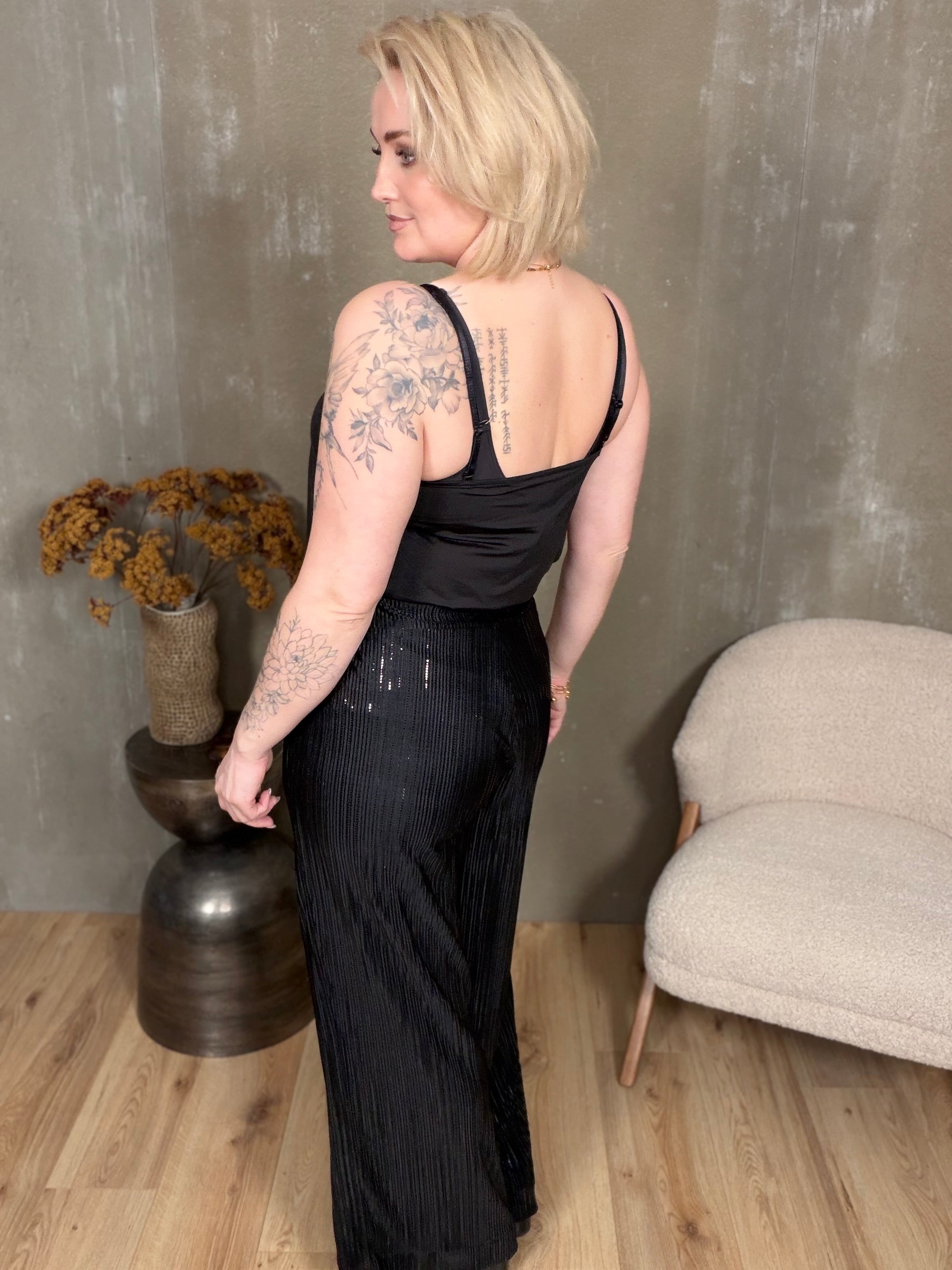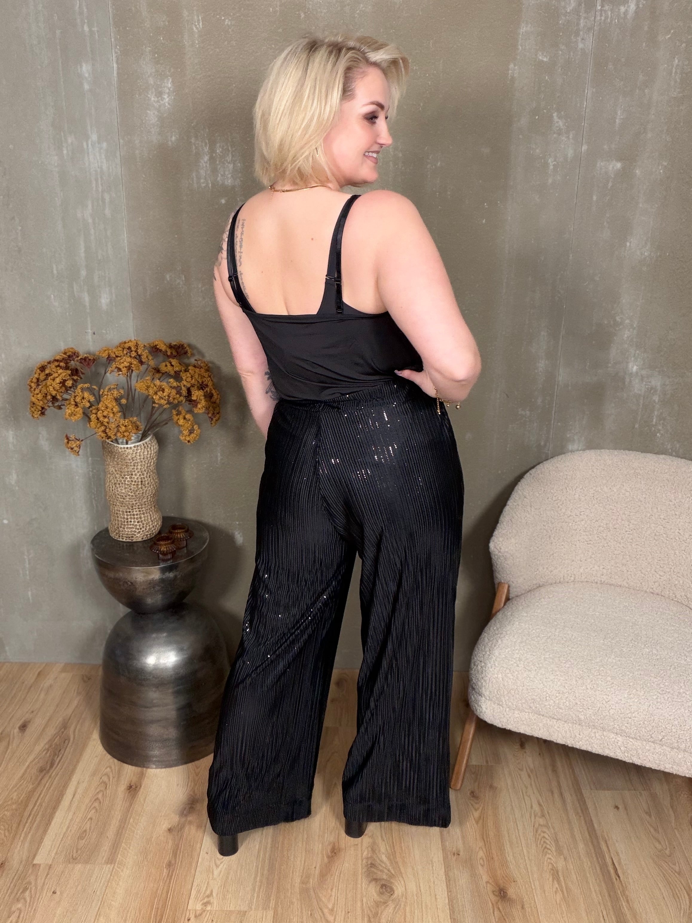 Palazzo buxurnar eru klæðilegar og frekar sparilegar, beinar buxur. Þessar eru svolítið 70's en þetta beina snið hefur poppað upp reglulega á tískupöllunum í gegnum tíðina.