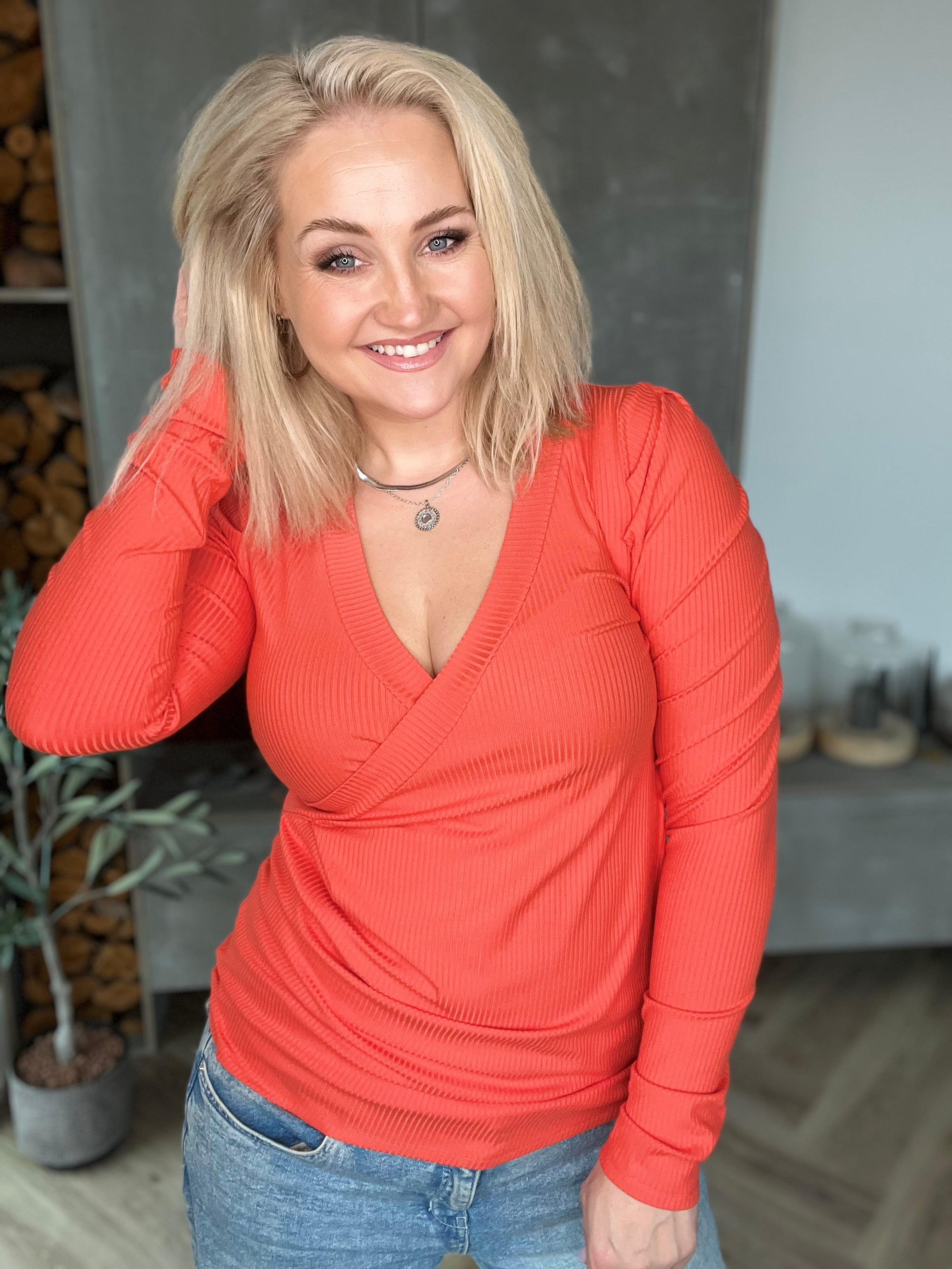 Á framstykkinu eru litlar follur sem mynda aukna vídd yfir magasvæðið en þar sem follurnar festast upp í skásaum, ekki í hlið, hentar bæði að hafa toppinn lausan yfir neðri part eða girða ofan í.