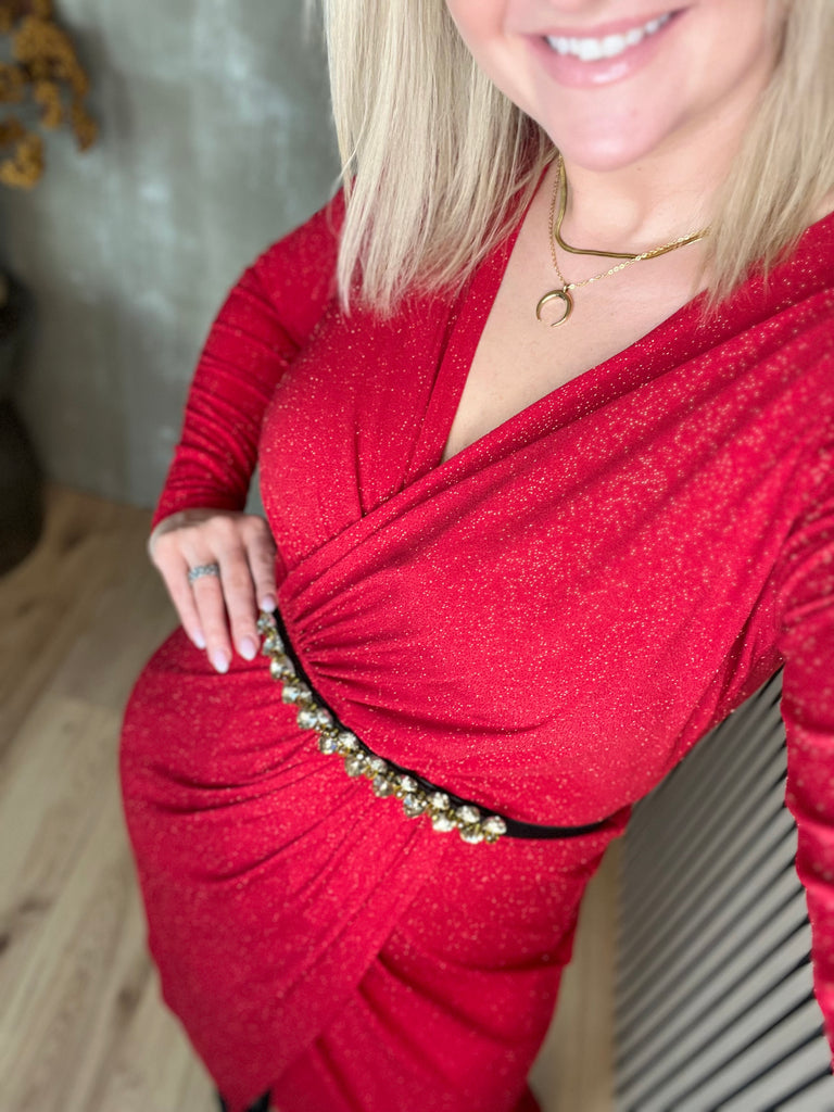 Sif kjóll Rauður glimmer