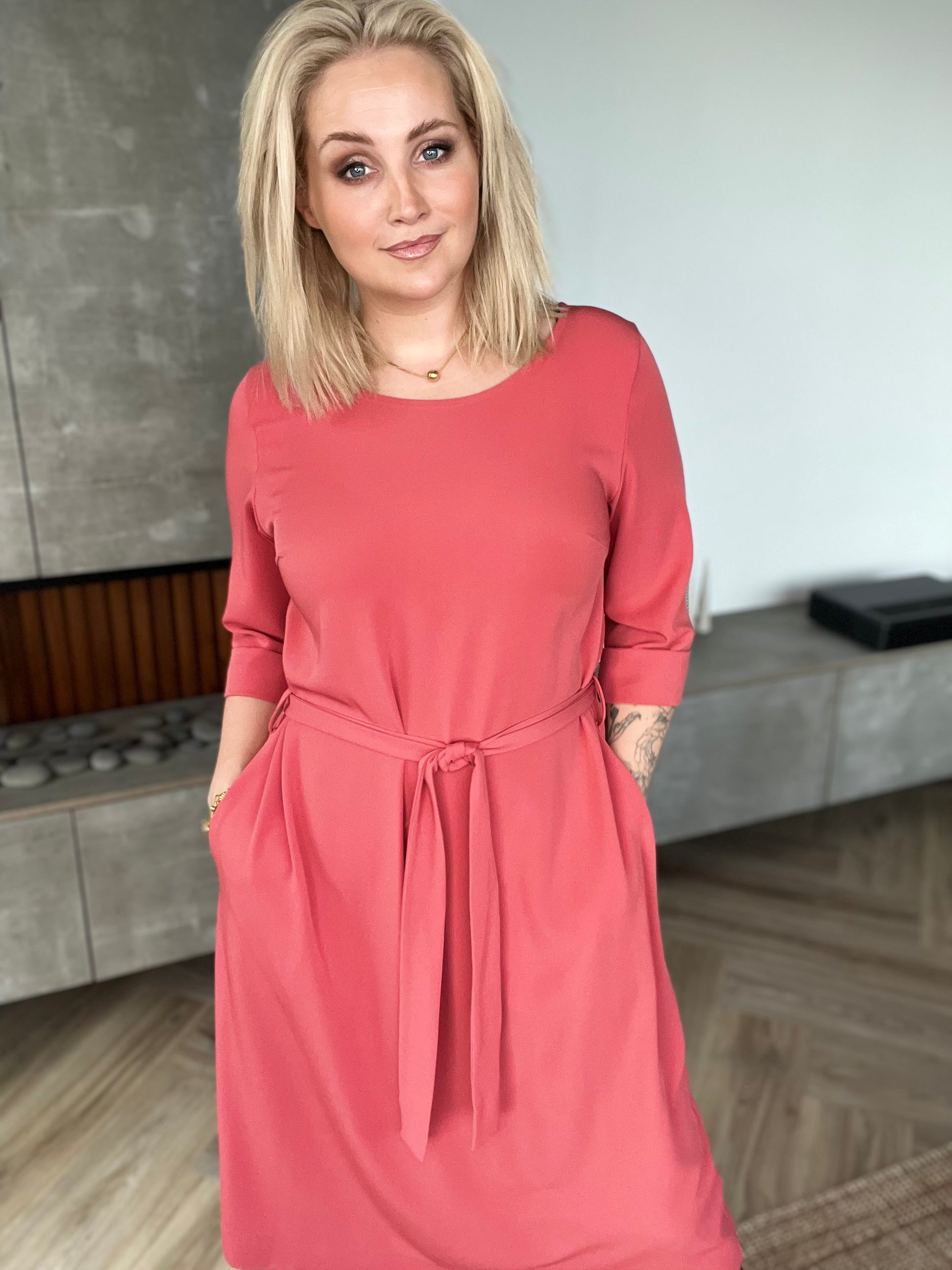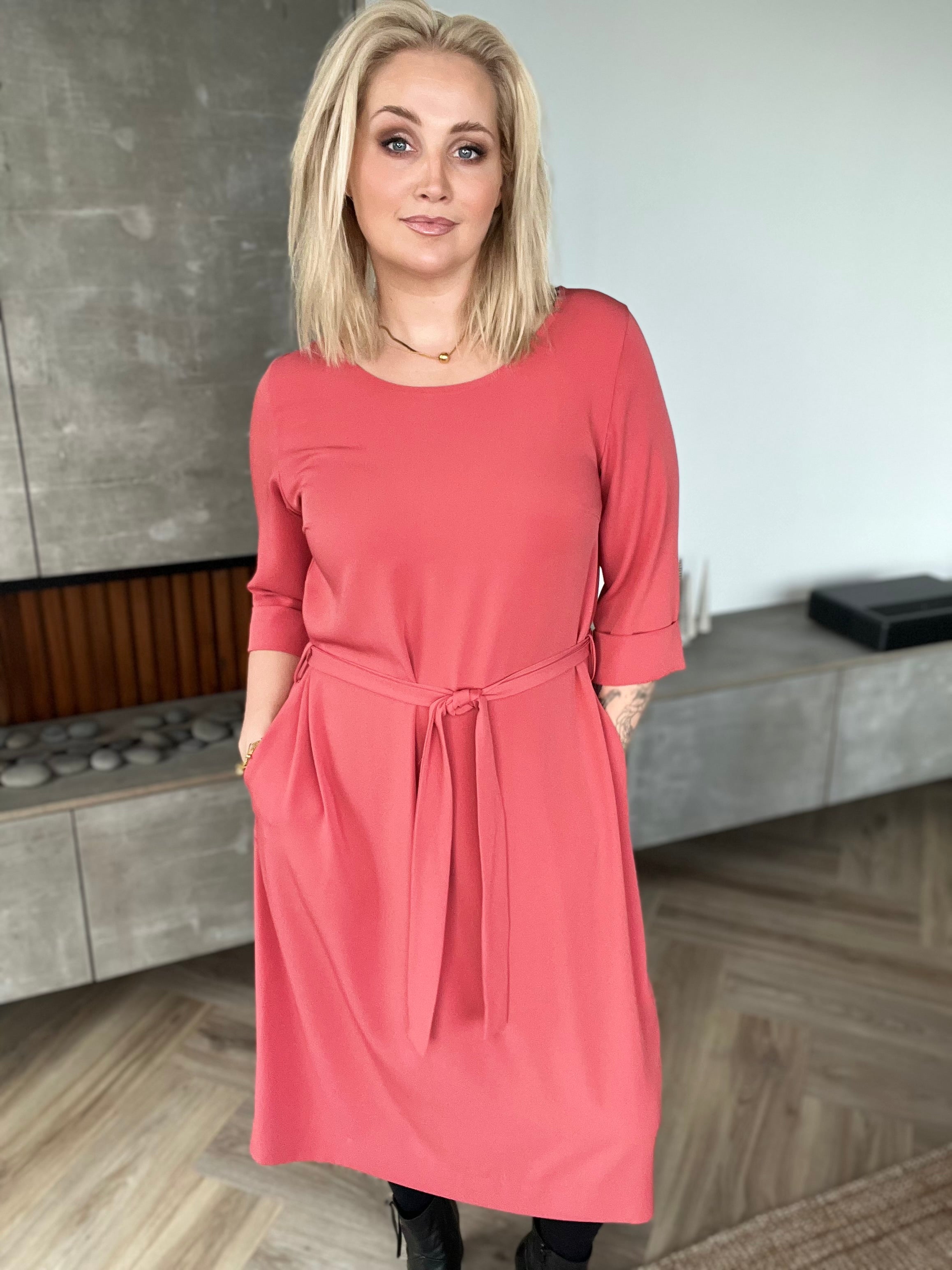 Stólpi er tímalaus og sniðugur kjóll með fallegu rúnuðu hálsmáli, kvart ermum með uppábroti og vösum í hlið! Honum fylgir einnig belti og spælar í hlið svo hægt að binda saman í mittið eða binda að aftan í “skyrtubindingu”. Einnig er hægt að skipta belti f annað, teygju eða mjórra leðurbelti td.