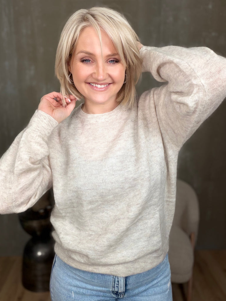 Westminster peysan er tímalaus og einstaklega þægileg peysa með rúnuðu hálsmáli og stroffi á ermum. Hún er einnig með stroffi að neðan og er auðvelt að dressa upp sem niður.